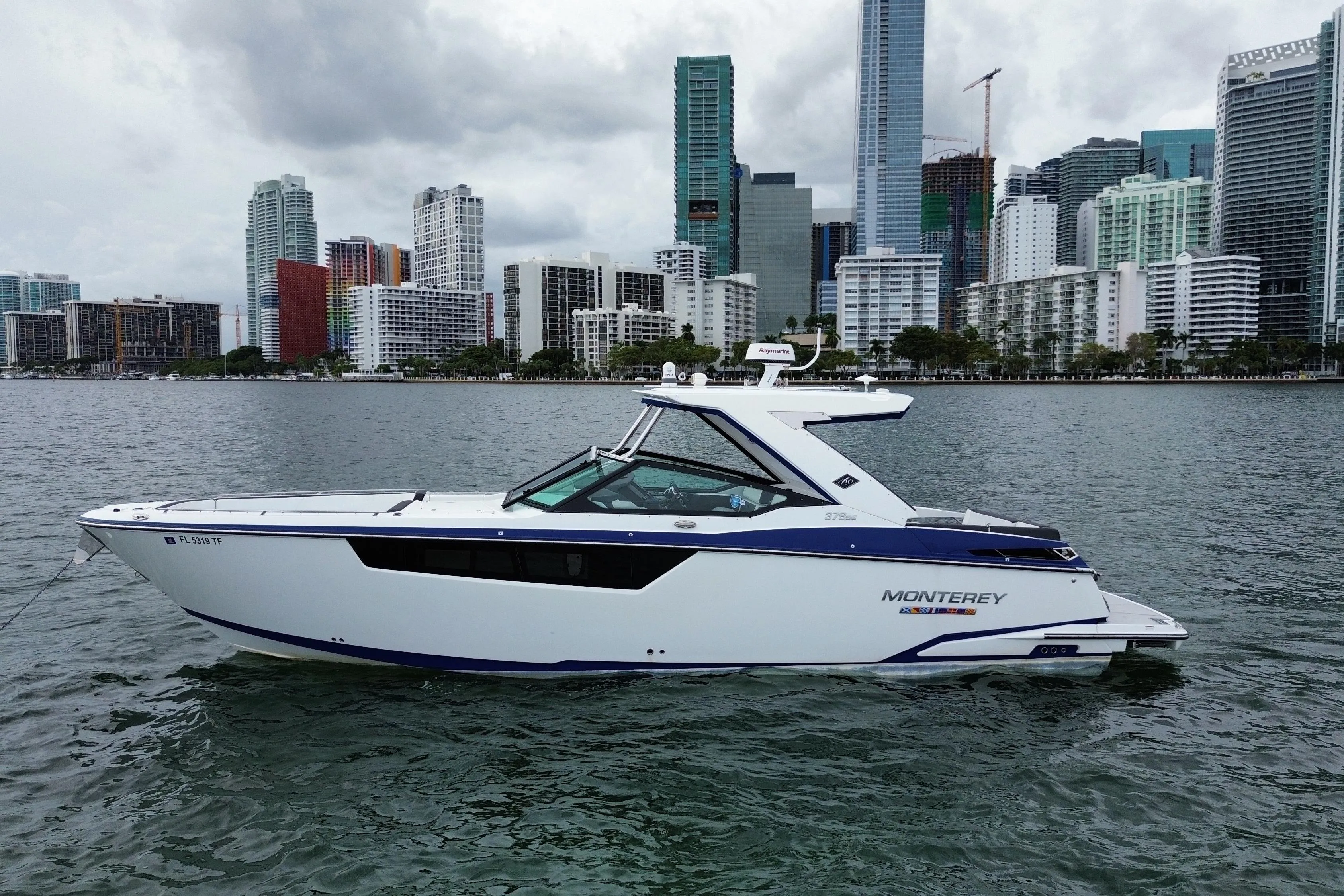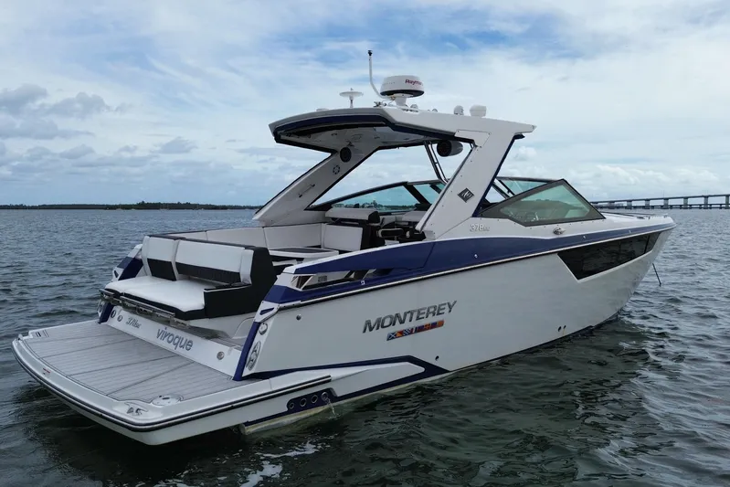 Experience the ultimate blend of performance, luxury and day-yacht comfort in this stunning Monterey 378 Super Express. With a sweeping profile and a massive cockpit made for entertaining, this boat delivers both thrills on the water and refined comfort below deck.