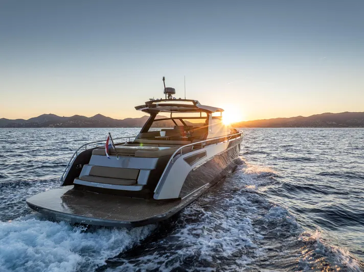 Designed with versatility in mind the B50’s layout strikes a perfect balance between social entertainment and cruising functionality. She boasts many unique features not common for boats her size including a stern jacuzzi that doubles as a sunbed and an innovative glass ceiling that transforms her lower lounge into an indoor/outdoor oasis. Additionally, thanks to its high-performance Volvo IPS drives with joystick control, Seakeeper stabilization and elevated bridge design, the AquaZen ensures luxurious comfort both underway and at anchor.