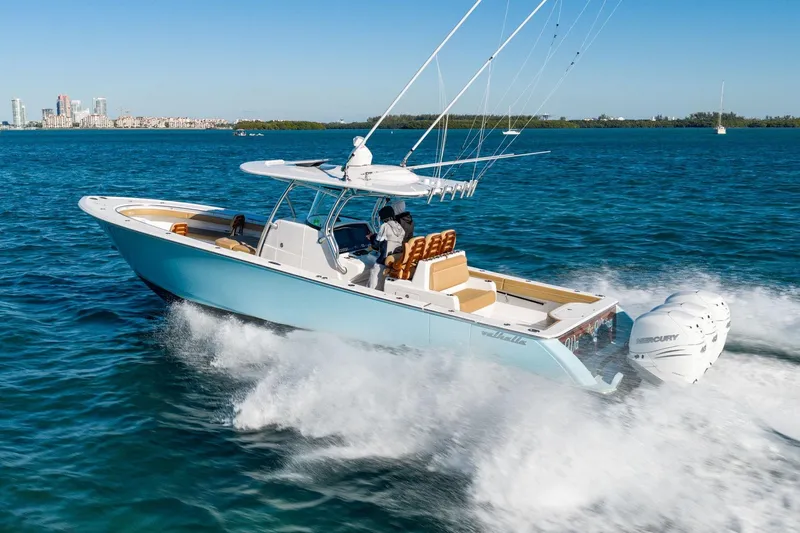 NEWEST V-37 VALHALLA TO HIT THE MARKET!! THIS BOAT IS ABSOLUTELY SPOTLESS AND LOADED WITH OPTIONS!! EXTENDED MERCURY PLATNIUM WARRANTY TILL 5/13/2028. SEAKEEPER!!