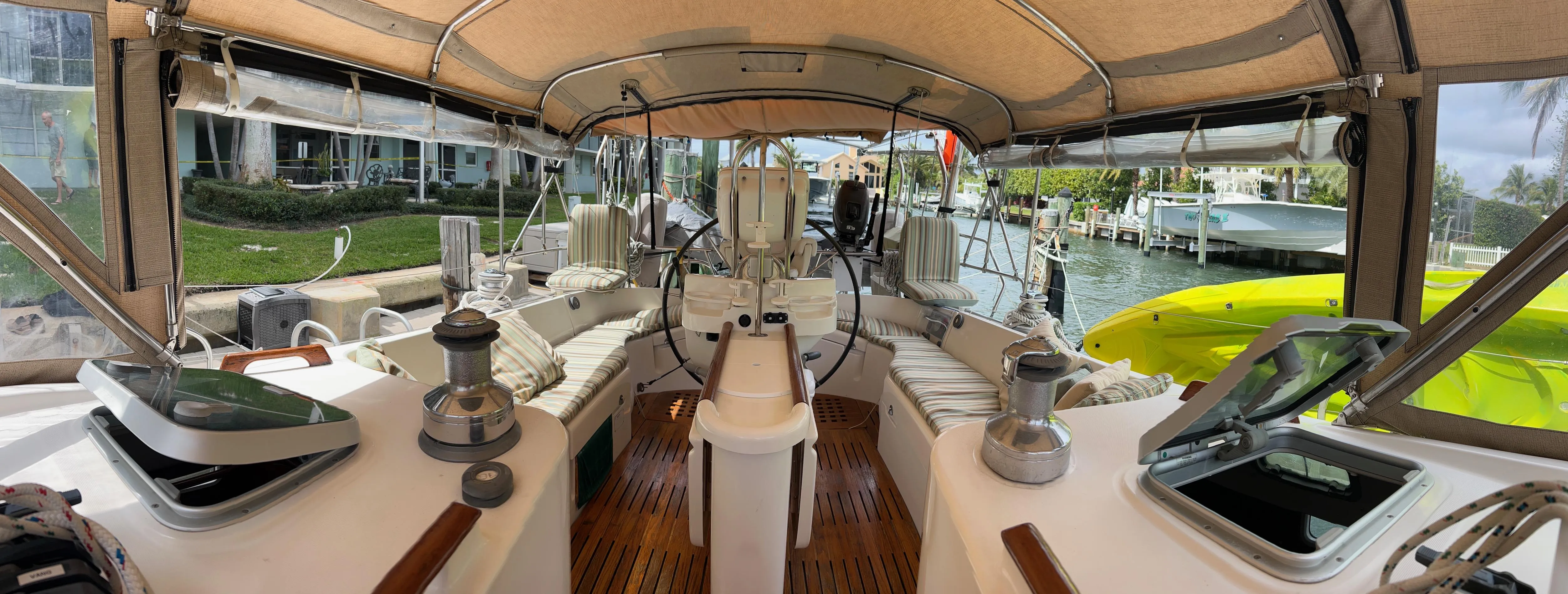 Bahamas awning from mast back of boom shade
