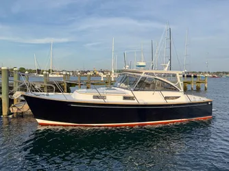Waypoint is a wonderful example of the Legacy 34 Express, designed by Mark Ellis and built right here in Rhode Island, the Legacy 34 is a handsome Downeast Express cruiser perfect for family cruising and dayboating. Waypoint is well-equipped with a new generator, some new soft goods and twin water jet drives, allowing for very shallow draft and no need to worry about lobster pots or running gear in the water. Pull right up to the beach without worry of damaging propellers or trimming outboards.