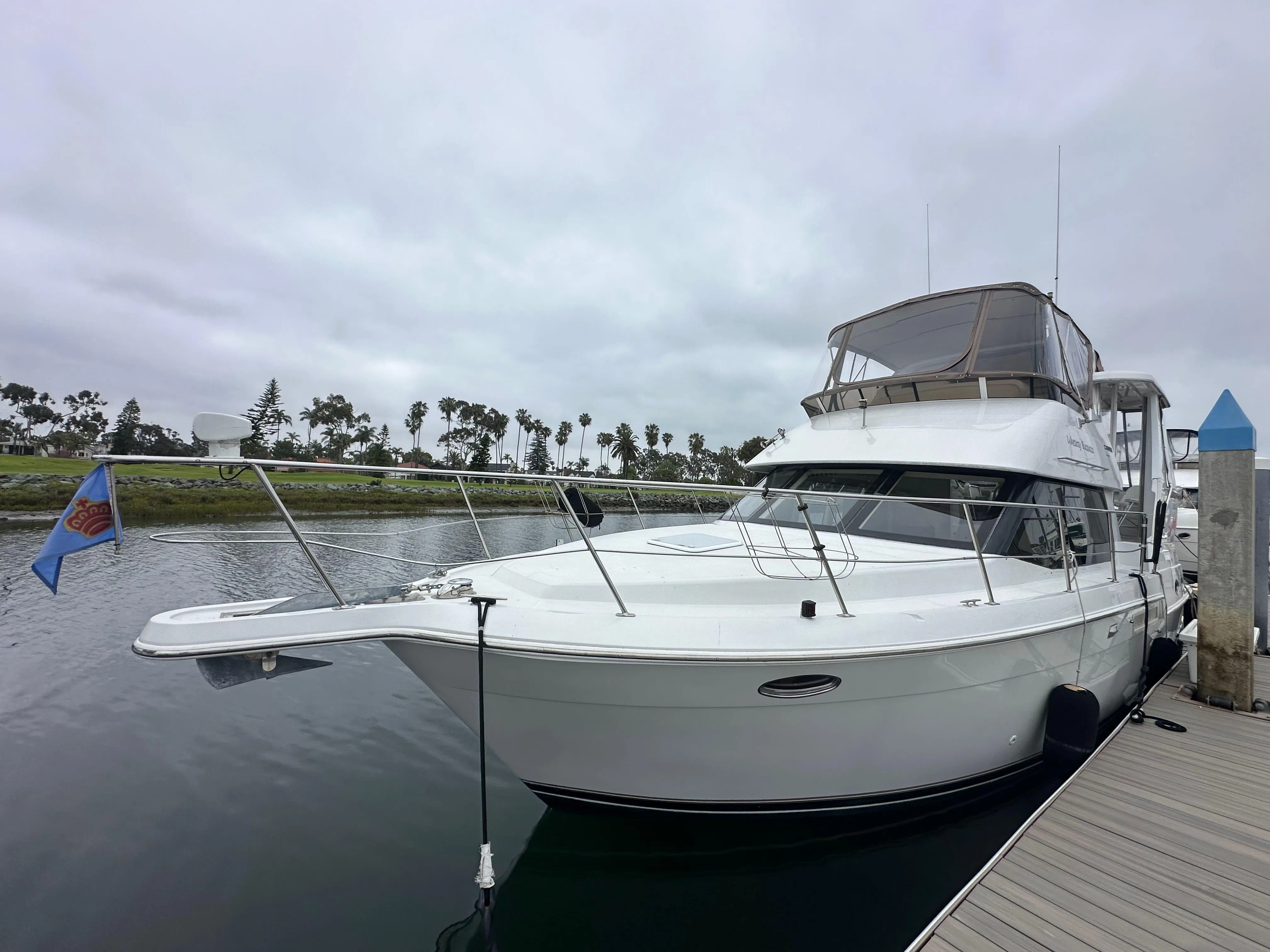 Introducing the stunning 1999 Carver 404 Cockpit Motor Yacht, a remarkable vessel that combines elegance and performance. With an overall length of 43.4 feet, this motor yacht is crafted from durable fiberglass, ensuring both strength and beauty on the water. Powered by twin Cummins Diamond Series inboard engines, each delivering 315 horsepower, it offers a cruising speed of 15 knots and a maximum hull speed of 20 knots, making it perfect for exhilarating journeys. The yacht features an electric windlass for effortless anchoring, enhancing your boating experience. Accommodating two spacious cabins and two heads, the interior is designed for comfort and convenience. Whether you're entertaining guests or enjoying a peaceful retreat, the Carver 404 provides an inviting atmosphere. Experience the perfect blend of luxury and functionality aboard the Whiskey Business, where every detail is tailored for your enjoyment on the open seas.