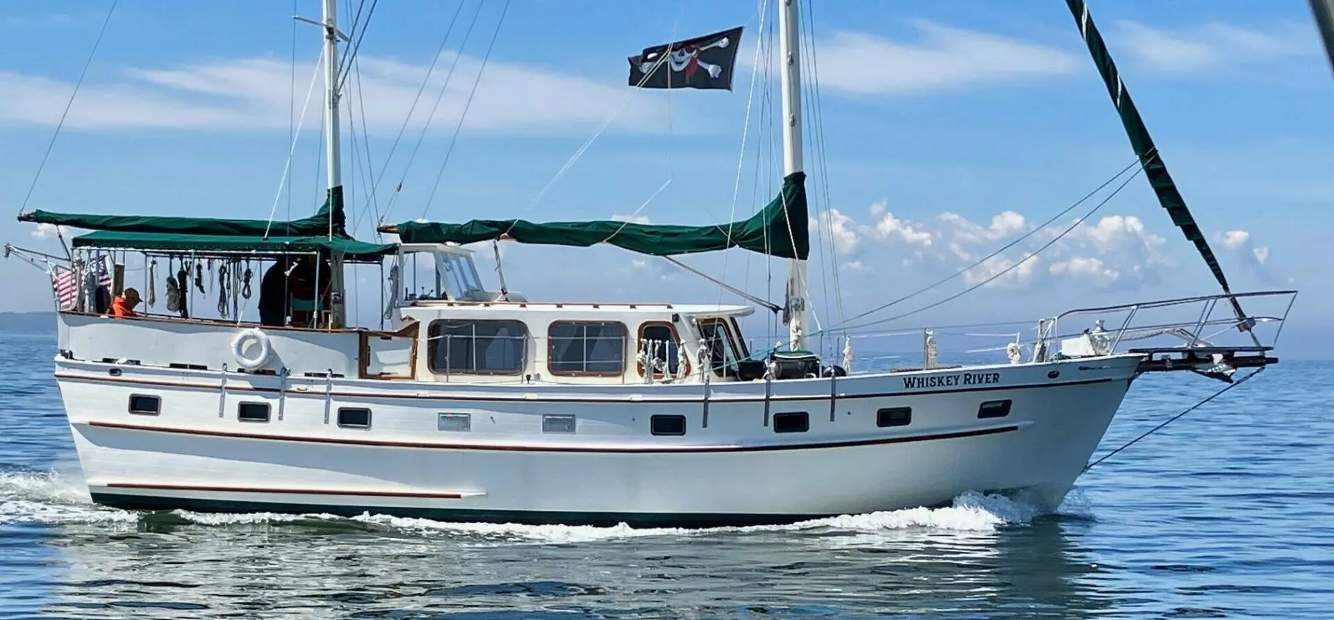 All exterior brightwork has been taken down to bare wood and refinished with a minimum of 12 coats of Epiphanes High Gloss Varnish. The bowsprit was completely rebuilt. Bottom cleaned and 2 coats of Interlux Micron CSC applied. Upgraded mechanical and electrical systems make her cruise ready. The master suite and extensive storage make Whiskey River the ideal liveaboard.