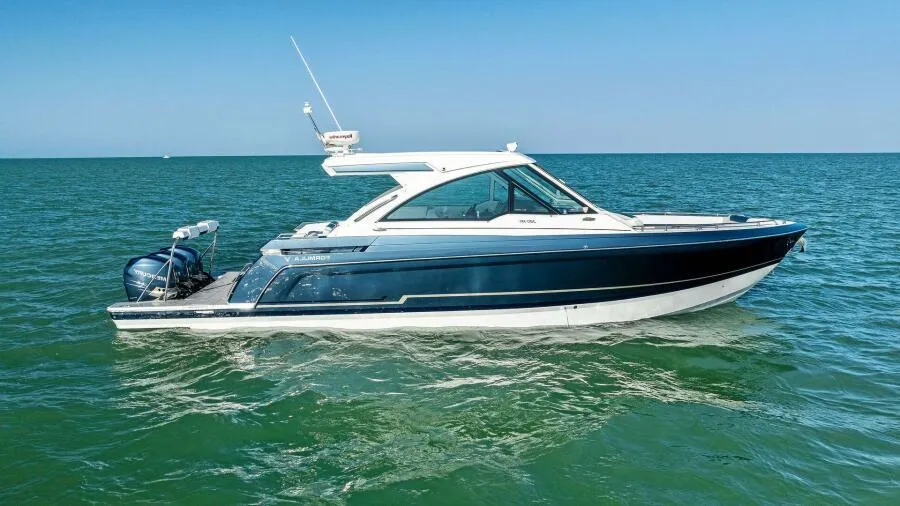 2022 38 Formula Super Sport Crossover "Whiskey & Wine" just serviced and ready for sale. Elevate your boating experience with this lightly used and well-maintained 2022 Formula 380 SSC, powered by triple Mercury Verado 400 with only 100 engine hours, as well as Joystick Piloting, for outstanding control and power. The 380 SSC is built on the iconic FAS3Tech multi-step hull which delivers great handling and impressive fuel economy. This well-designed Crossover is a perfect combination of a family fun day boat and a weekend cruiser.