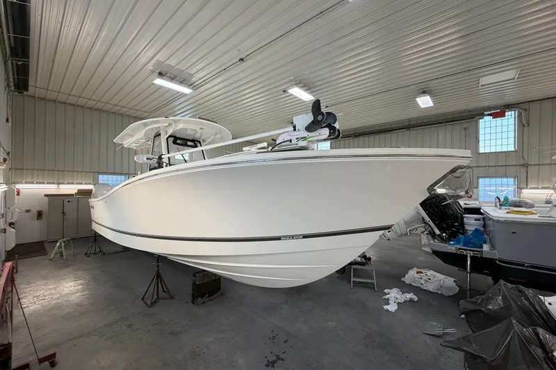 Triple White Yamaha F300 4-Stroke Engines with DES Tilt Helm and DEC– Plus Helm Master® EX Joystick w/ Multimode Set Point™,EX Autopilotw/ Waypoint Deceleration, and Electronic Key Switch with Wireless Fob.SHESHOWS NEW! YAMAHA WARRANTIES TILL 3/31!