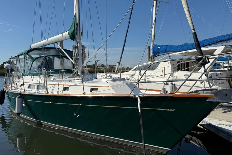 Her two-cabin layout features a large v-berth forward with its own private head and stall shower, and a spacious queen-sized centerline berth aft, with a private head and shower. The high quality of her construction is evident everywhere you look, from the joinery to the stainless steel portholes to the solid structure of the deck and hull. This is a very special boat, and one that you could sail to exotic ports tomorrow and be assured that you were perfectly outfitted and equipped. Her loving owners have spared no expense, and it shows!