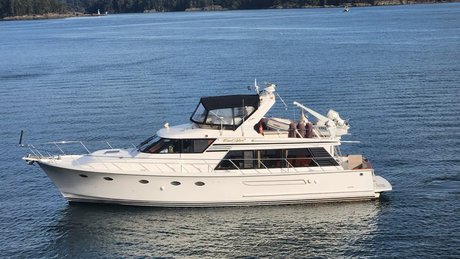 Wind Star is a one owner vessel. The owners had her custom built from Ocean Alexander with an extended salon and a customized owners cabin. She has been kept in a boat house since new, and it shows.