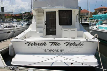 The beamy 42 Convertible utilizes space to a remarkable degree, with ample amenities and storage contributing to the well-being of owners and guests, alike. Consider the 42 Convertible's two luxurious double-berth staterooms served by a split-head and stall shower arrangement. And the enormous booth settee wrapped in a solid cherry table angled to face the convertible sofa and entertainment center. In the 42 Convertible, all combine in a superbly styled cabin perfect for conversation. The impressive galley is integrated into the layout. You will also be amazed by the generous expanse of cherry wood, which warms and enriches the interior. Topside on the 42 Convertible, the captain will appreciate an efficient helm station and the power of twin Yanmar diesel engines. And all will be impressed by her smartly restyled exterior lines.
