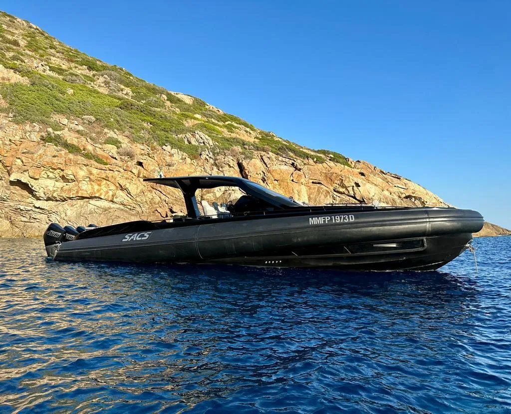 Bellissimo Sacs Rebel 47, unico proprietario, 4 motori fuoribordo Mercuriy Verado V8 450 Racing, per un totale di 1.800 hp, 250 ore di moto, accessoriatissima. Aria condizionata, Joystick di controllo, garage tender, gruppo elettrogeno 4 KW.