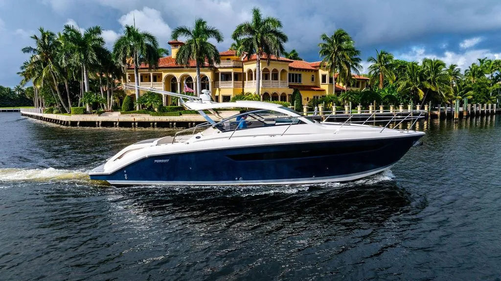 Experience Legendary Performance with the 2014 Pursuit 365 Sport Coupe. Step aboard a masterpiece of design and engineering that delivers the legendary Pursuit performance and attention to detail, wrapped in an elegant yet sporty package. Powered by reliable twin Yamaha outboards, this vessel offers a whisper-quiet, exhilarating, and fuel-efficient ride. Equipped with twin Garmin displays, Radar, Autopilot, Bowthruster, Helm deck AC, and a powerful generator, the 36 Pursuit is ready for any adventure. The hull, meticulously designed for Yamaha outboards, boasts a sharp entry with a 20-degree deadrise, traditional strakes, reverse chines, and a fully enclosed engine compartment. The sleek transom, striking sheerline, and signature hullside windows set this vessel apart from anything on the market today.