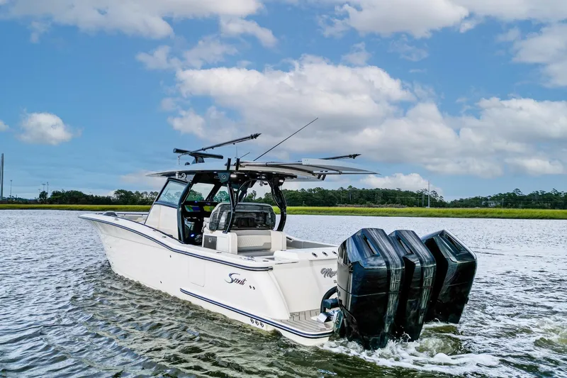 Not many boats can be considered "BETTER THAN NEW" but this one can be.  She has had many upgrades and shows like it just left the showroom.  It has all the available Scout Factory Optional Equipment plus it has Ceramic Coating, Custom Paint Enhancements on the engines and seating, the Radar Scanner and FLIR Camera have color coordinating Black Paint and the Hull Bottom has the Clear High Performance Bottom paint.  The outriggers have been upgraded to Marsh Tacky Carbon Fiber in Black and the boat has been stored either inside a building or in a Sea Pen in the water.   Call today and be on the water next weekend - this one is truly turn key!