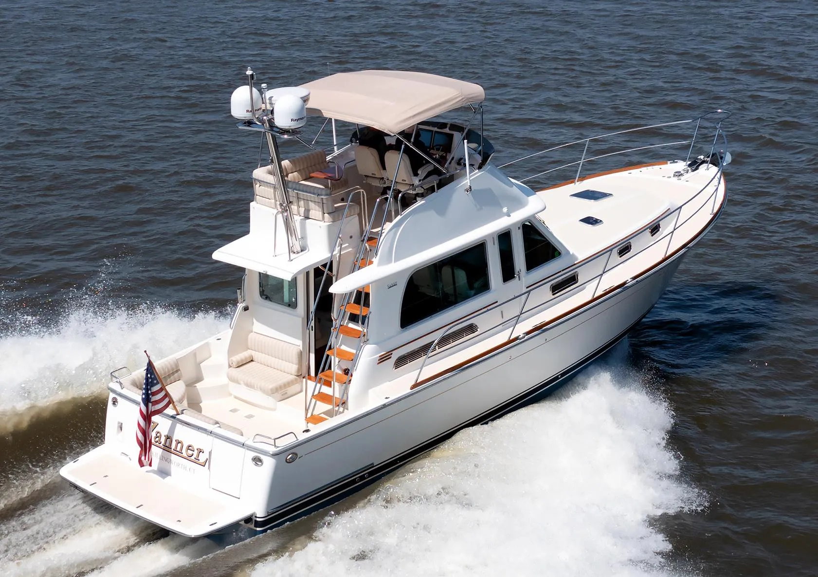 Introducing "ZANNER," an exceptional original owner Sabre 42 with the Flybridge option, providing dual station operation for an unparalleled cruising experience. This exquisite downeast Flybridge cruiser stands out in its size range and category. The owners collaborated closely with Sabre, selecting numerous options and implementing custom refinements to enhance the standard yacht. Positioned in the fresh/brackish waters of the Connecticut River, she has navigated Long Island Sound and the nearby New England waters during the brief Northern season. She has been meticulously stored and maintained by one of the region's leading yards, ensuring her impeccable condition.