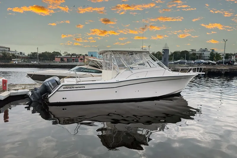 "ZIG ZAG," is a clean example of the popular 33' Grady-White Express. Versatile salt-water fishing boat and comfortable cabin cruiser with a great interior layout. Easy to operate with twin Yamaha 250HP Engines and Bow Thruster. The boat features a hardtop and newer enclosure, bow thruster, Garmin electronics and 900 hours on the engines.