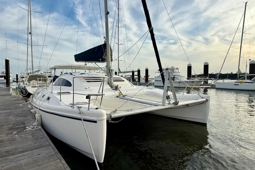 Introducing "Zimbini", a 2006 Island Spirit 401 OWNERS VERSION. She is ICW friendly and, unlike larger cats, she can be hauled out at most boatyards.Perfect for adventurous cruising or leisurely sailing, this unique design boasts superb performance while providing lots of creature comforts and great headroom in a manageably sized package. "Zimbini" is equipped with reliable Yanmar 3YM30 diesel engines and SD20 saildrives, and she is ready to go cruising now. Come take a look at this great little catamaran in beautiful Charleston, SC and plan your escape!