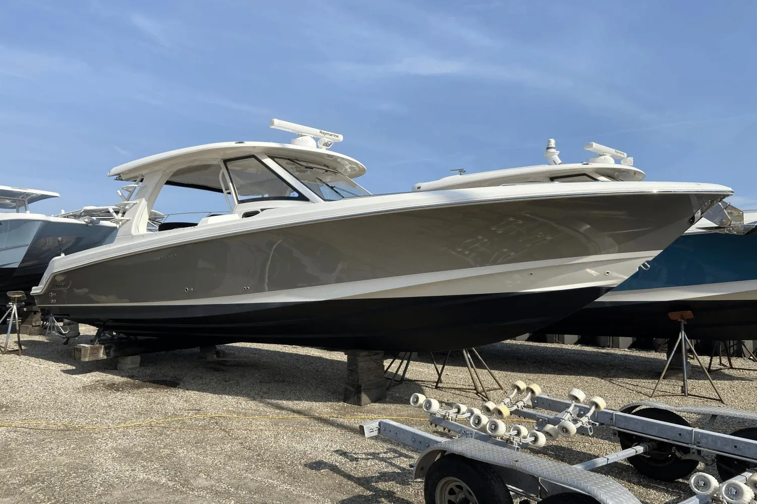 Gorgeous Tectonic Silver hull in flawless condition.  *** Only 230 hours ***  Triple Mercury Verado 350hp with Joystick docking.